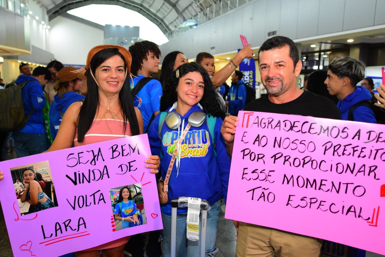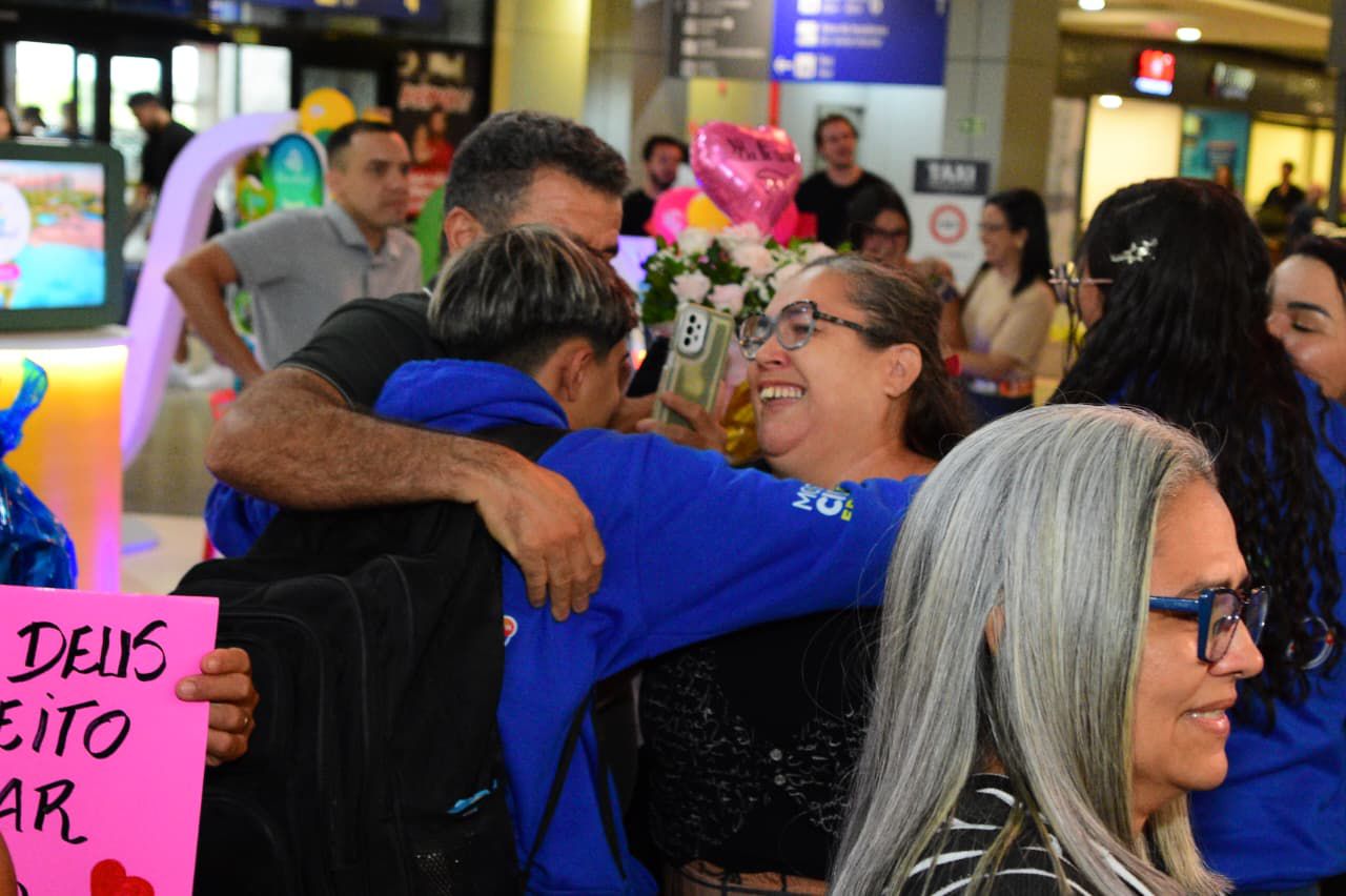 Os pais e mães dos 20 alunos que integram a 1ª edição do Programa Partiu Brasil, projeto de intercâmbio ofertado pela Prefeitura de Mossoró, recepcionaram seus filhos na tarde deste domingo (25), no Aeroporto de Fortaleza. Os alunos retornam após uma semana de intercâmbio em Brasília-DF, onde conheceram pontos históricos e culturais da capital do país.
