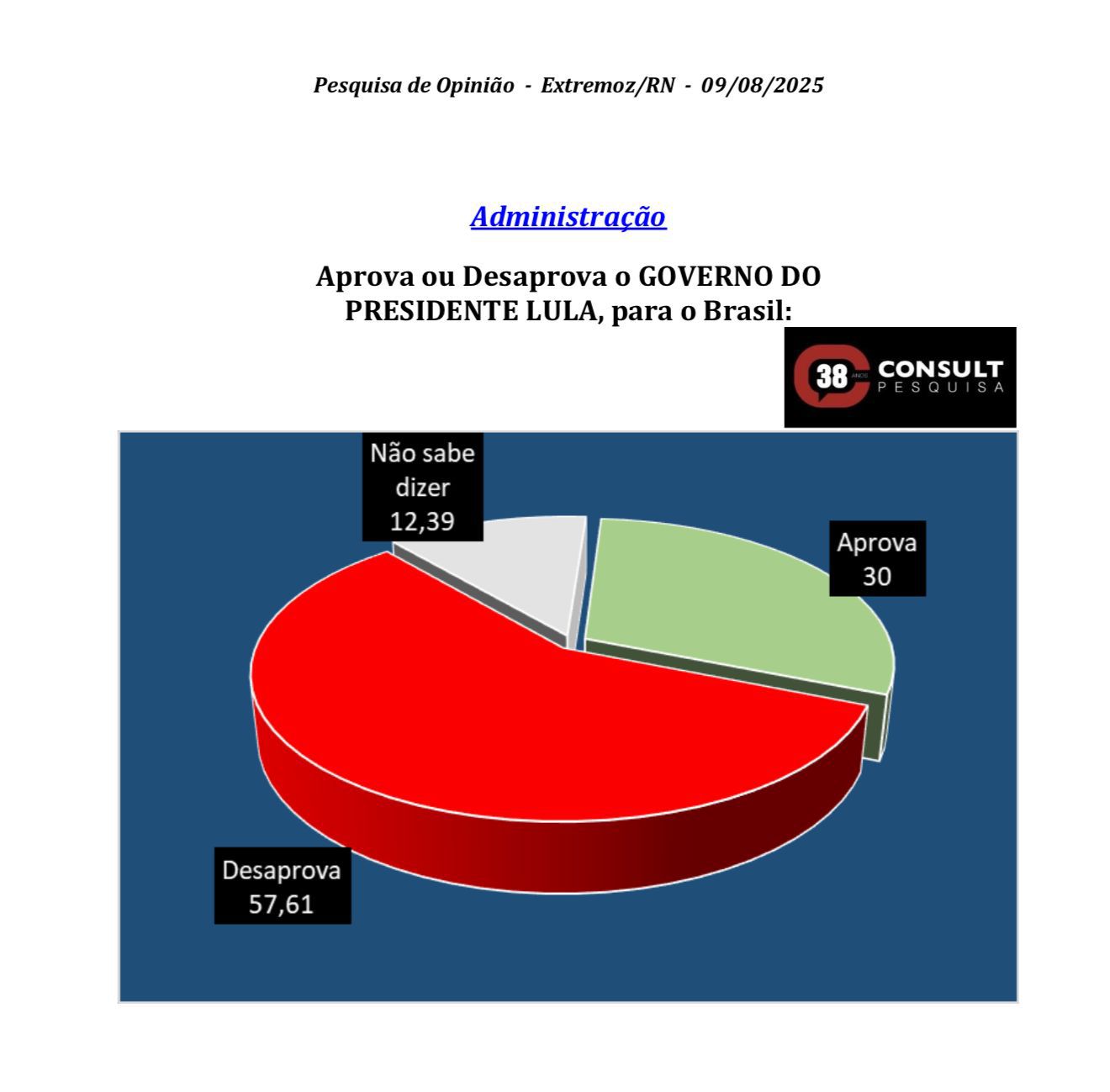 O desempenho contrasta fortemente com o cenário de desgaste das gestões estadual e federal no município. A governadora Fátima Bezerra (PT) amarga apenas 17,61% de aprovação e 63,48% de desaprovação, enquanto o presidente Lula (PT) registra 30% de aprovação e 57,61% de desaprovação.