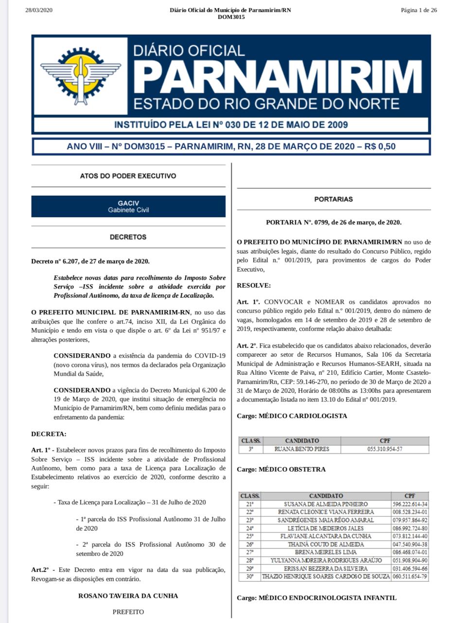 Natal, 28 de março de 2020.