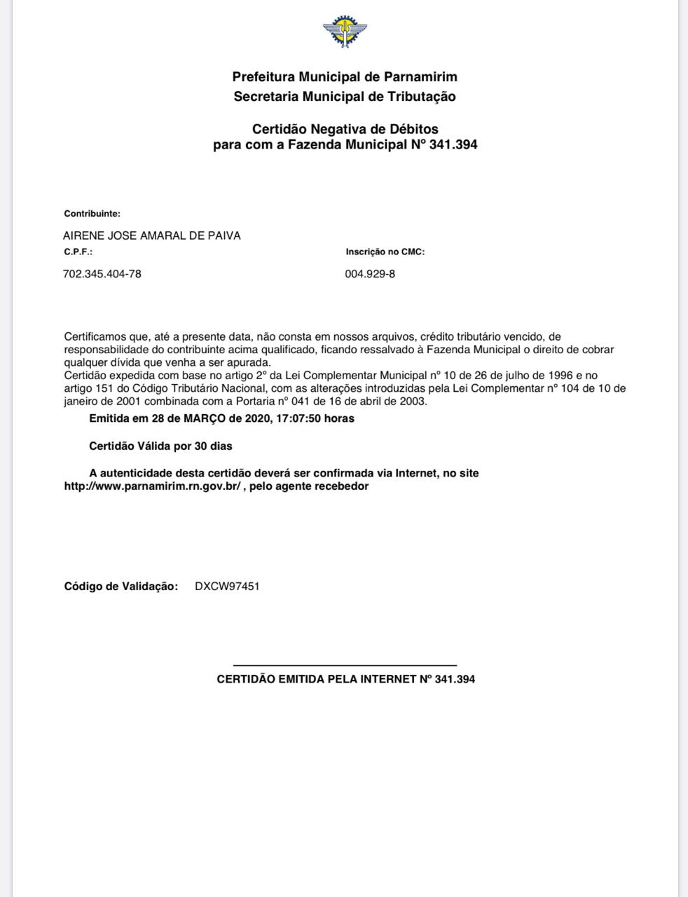 Em tempos de coronavírus a união faz a força. Sem dever nada a prefeitura de Parnamirim o tabelião Airene Paiva lançou através das redes sociais uma proposta para amenizar o sofrimento dos pequenos comerciantes, que vem enfrentando dificuldades financeiras por conta da pandemia do coronavírus. A proposta de trégua na cobrança dos impostos municipal como, IPTU e ISS, foi vista pelo prefeito com bons olhos e também como uma grande contribuição dada por setores da oposição ao poder público. Taveira como resposta à Airene, editou um decreto,n° 6.207 de 27 de março de 2020, estabelecendo novas datas para que o contribuinte possa pagar o ISS e a taxa de licença de localização. Nesse decreto ficou de fora a cobrança do IPTU do cidadão que está desempregado e também das incorporadoras, que estão com a corda no pescoço nesse momento de crise, tendo que pagar o IPTU dos imóveis não comercializados. Mas, a medida já foi um alívio para o comércio que vêm perdendo receita com a queda nas vendas. Esse instrumento governamental vai tirar a corda do pescoço do setor da construção civil, principalmente, agora nessa situação que estamos vivendo, na qual o povo em quarentena não compra nada, principalmente imóveis. Por isso, o poder público teria que agir também nesse setor, preservando os empregos dos parnamirinenses. Essa medida não significa uma renúncia de arrecadação, mas, uma oportunidade para em momentos de crise, o cidadão que tem o seu negócio, possa reprogramar seus débitos nesse período de dificuldade. Esse é um dos caminho que o poder público deve seguir e ao tabelião Airene Paiva parabéns pela ideia e por manter os seus impostos rigorosamente em dia. Veja a certidão e o decreto.