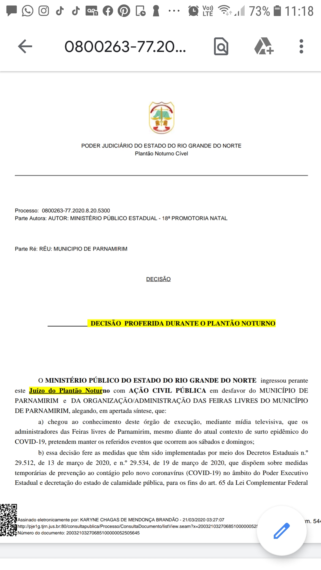 O MPF, MP/RN, TJ/RN, JF/RN, TRT/RN, MPT/RN, TCE/RN e DPE/RN permanecem atuantes e atentos à defesa dos direitos e preservação da vida dos cidadãos potiguares. Cumpram-se os decretos estaduais.