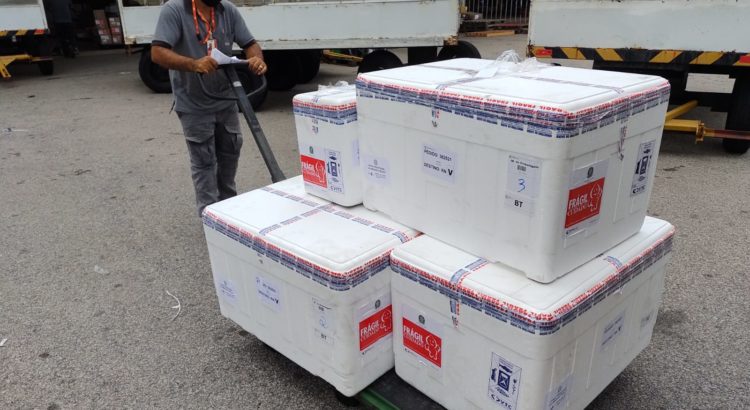 A previsão é de que às 15h desembarque no aeroporto a carga de 29.250 unidades da Pfizer. Segundo a orientação do MInistério da Saúde, todo este lote é voltado para primeira dose.
