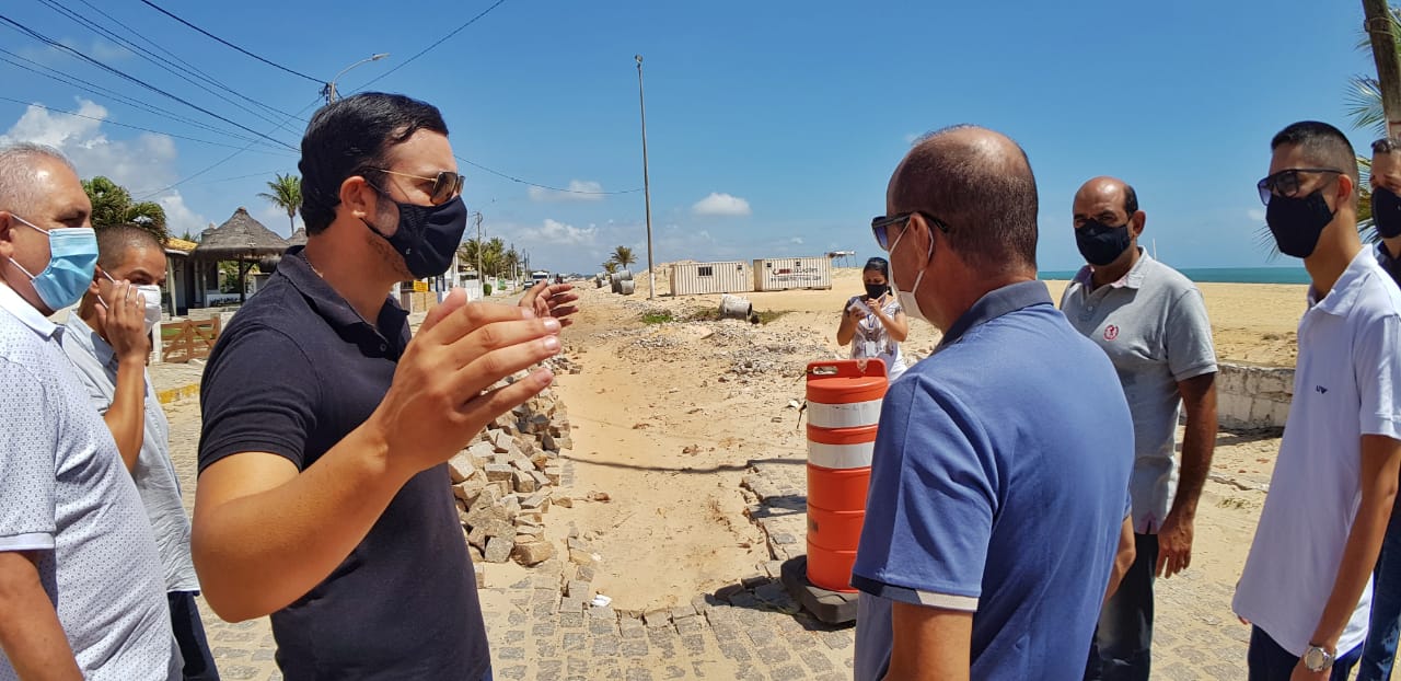 A visita iniciou na orla de Pirangi do Norte, que em um prazo de oito meses contará com um calçadão de 577 metros, drenagem, acessibilidade, áreas para atividade física, ciclovia e estacionamento.