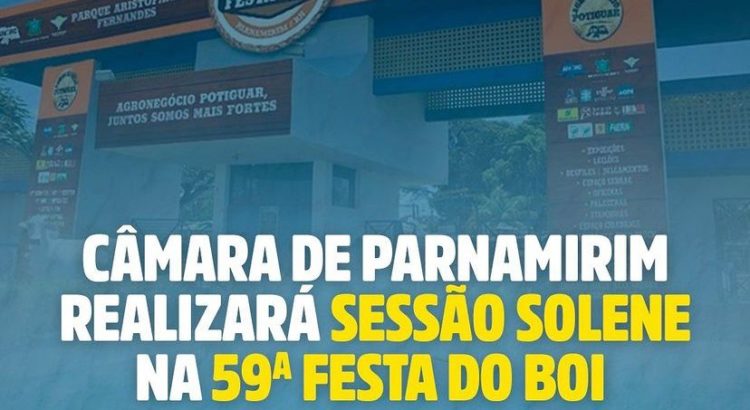Nesta terça-feira, 16 de novembro, a Câmara Municipal de Parnamirim vai realizar uma Sessão Solene durante a 59º Festa do Boi, no auditório da ANORC. O evento vai começar a partir das 15h e será transmitido ao vivo pela TV Câmara, via Facebook.