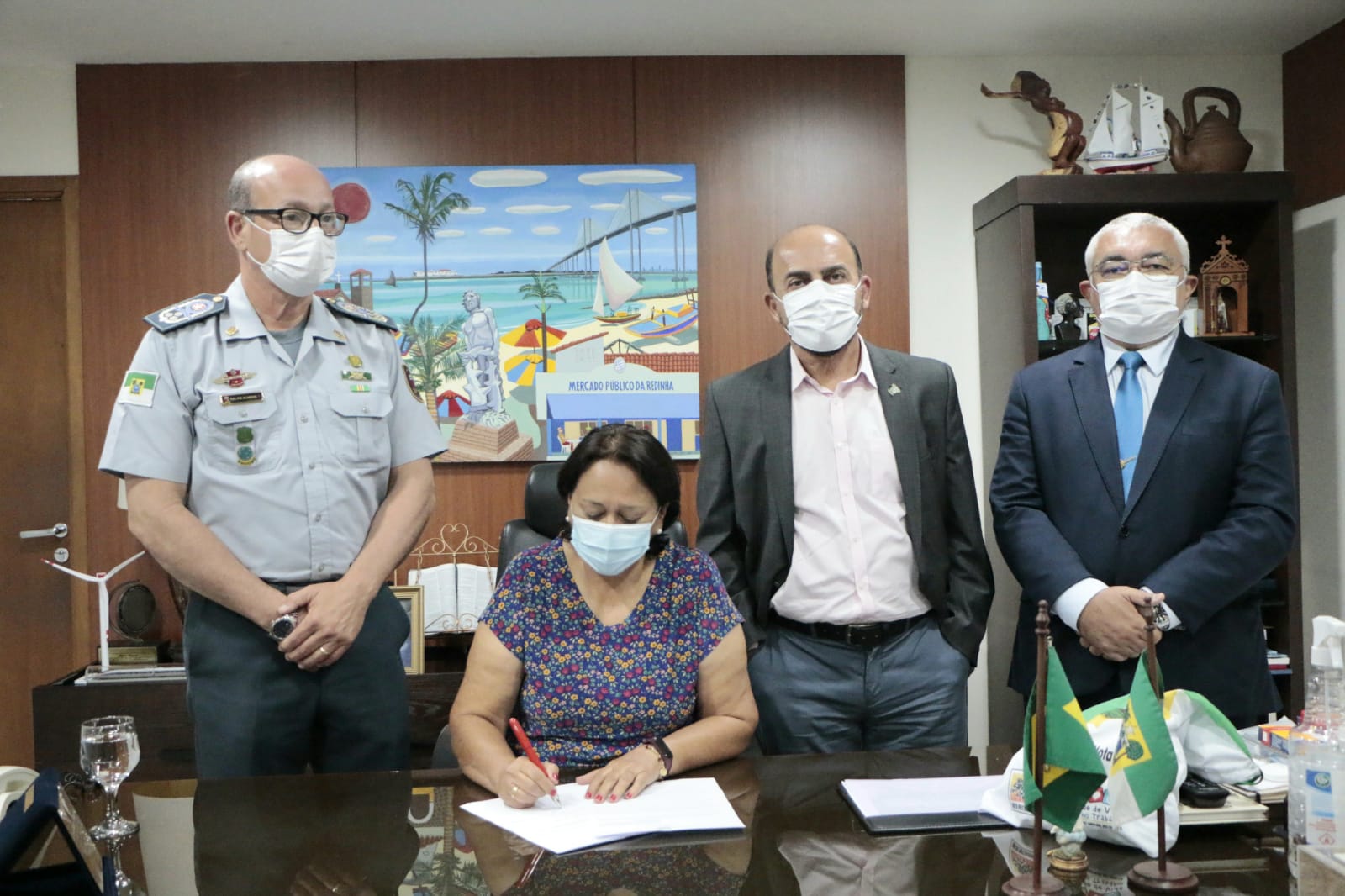 Participaram da assinatura o vice-governador Antenor Roberto, o titular da Secretaria de Estado da Segurança Pública e da Defesa Social (SESED), coronel Araújo Silva, e o comandante-geral da Polícia Militar, coronel Alarico Azevedo.