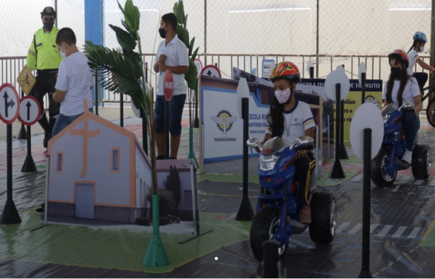 Com o tema “Comando educativo: o trânsito começa hoje – Cidade Mirim”, o Detran instalou uma minicidade na quadra da Escola Municipal Ivanira Paisinho, em Parnamirim, para ações integradas de educação e conscientização no tráfego. A atividade, voltada para as crianças, foi realizada em parceria com a Câmara Municipal de Parnamirim, nesta sexta-feira, 24.