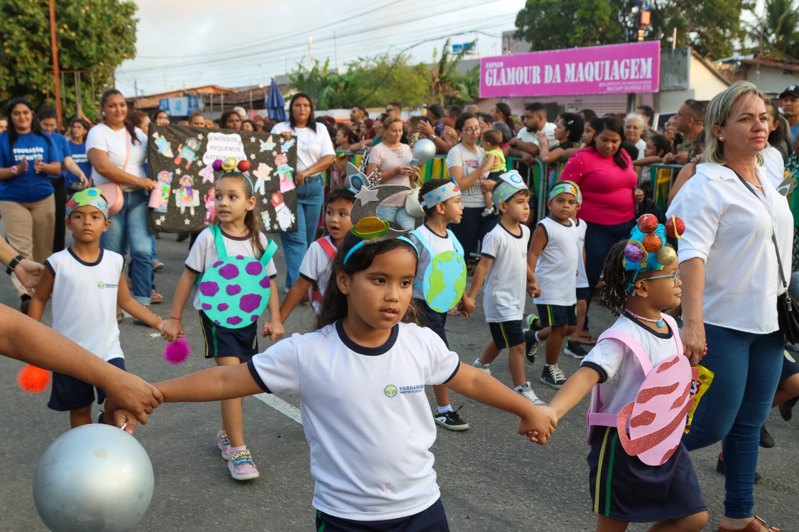 Cerca 40 unidades de ensino do município, entre públicas e particulares, participaram da solenidade, que também contou com a presença de instituições militares, como Aeronáutica, Exército, Marinha, Polícia Militar, Corpo de Bombeiros e Polícia Rodoviária Federal. Além disso, escoteiros, secretarias municipais e entidades da sociedade civil contribuíram para tornar o momento ainda mais especial.