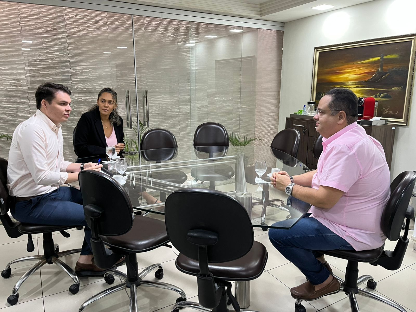 Em alusão ao Outubro Rosa, mês de prevenção ao câncer de mama, o presidente da Câmara de Parnamirim, vereador Dr. César Maia e a presidente da Frente Parlamentar em Defesa dos Direitos das Mulheres e vice-presidente da Casa Legislativa, vereadora Rárika Bastos, receberam, nesta quinta-feira (02), o secretário de Saúde do município, Lealdo Pezzi, para uma reunião de alinhamento sobre o funcionamento de um mamógrafo nas unidades de saúde de Parnamirim.