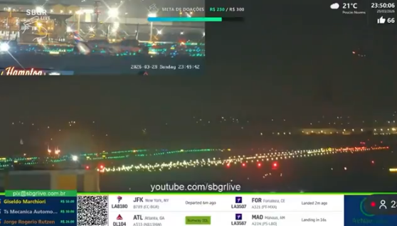 Um voo com destino aos Estados Unidos precisou retornar às pressas ao Aeroporto Internacional de São Paulo na noite de domingo (29), após uma explosão em uma das turbinas logo após a decolagem. Apesar do susto, não houve feridos.