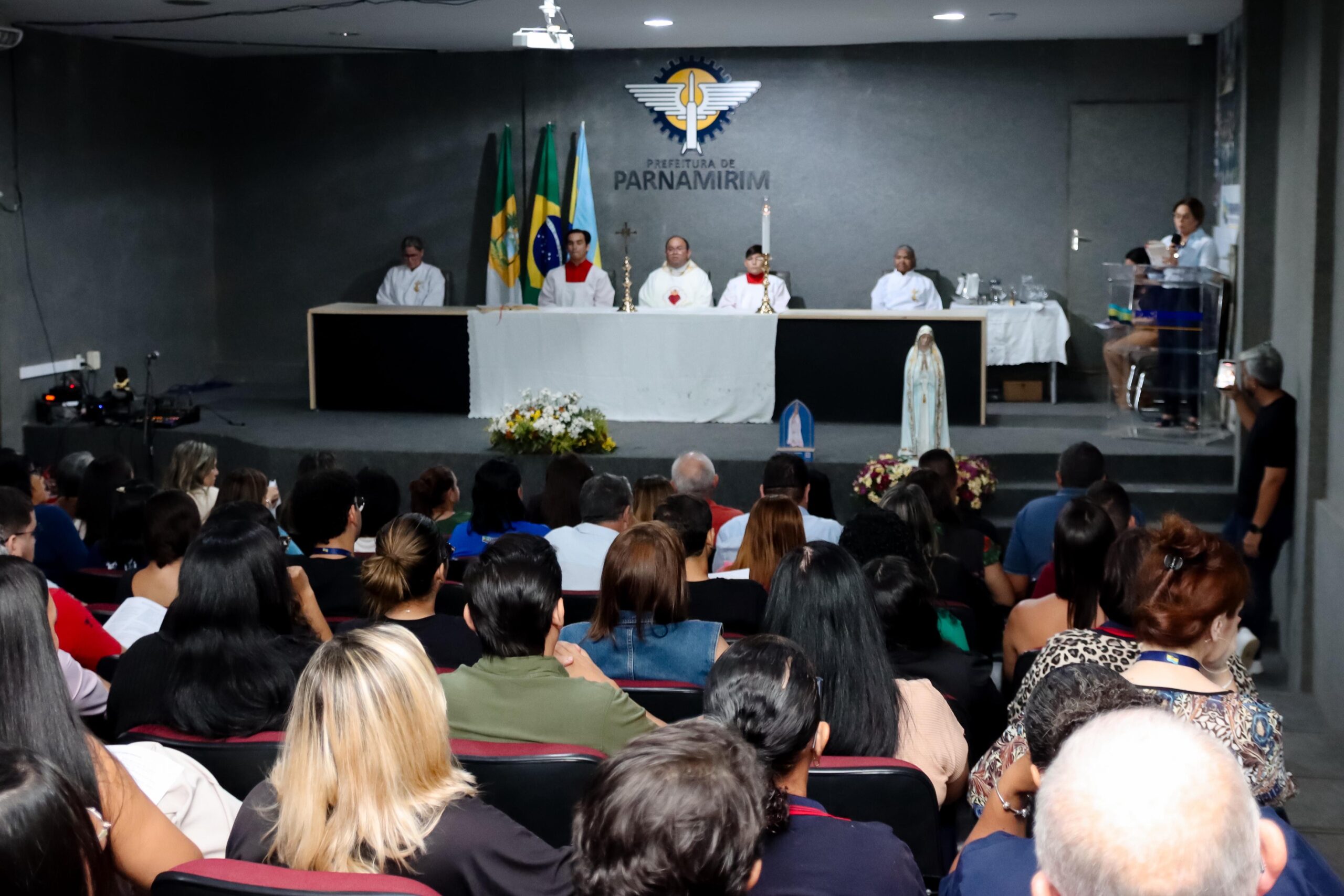 A Prefeitura de Parnamirim recebeu, na manhã da última segunda-feira (27), a visita da imagem de Nossa Senhora de Fátima, padroeira do município. O momento especial aconteceu no auditório da sede administrativa, reunindo servidores em uma celebração de Santa Missa marcada por fé, devoção e união.