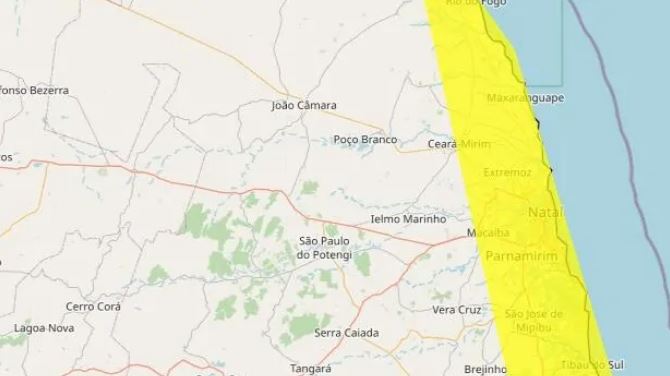 O Instituto Nacional de Meteorologia (Inmet) emitiu, nesta segunda-feira 14, um alerta de acumulado de chuvas para 23 cidades do Rio Grande do Norte, incluindo a capital, Natal. O aviso é da cor amarela, de perigo potencial, e é válido até as 10h desta terça-feira 15.