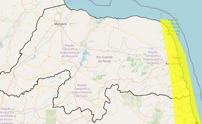 Confira as cidades sob o alerta amarelo (perigo potencial) no Rio Grande do Norte: