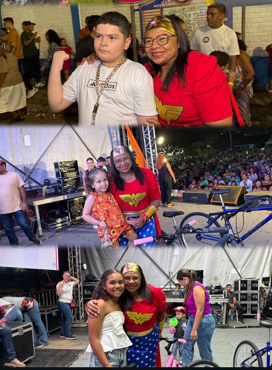 A prefeita Nilda entrou no clima, veio a caráter e mostrou, mais uma vez, o coração gigante que tem. Como uma verdadeira professora e amiga das crianças, ela brincou, conversou e tirou fotos, tornando-se uma das atrações mais queridas da festa.