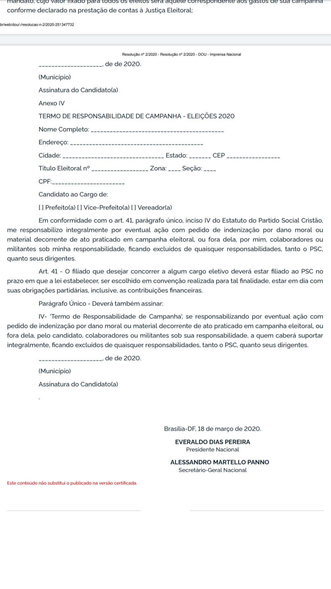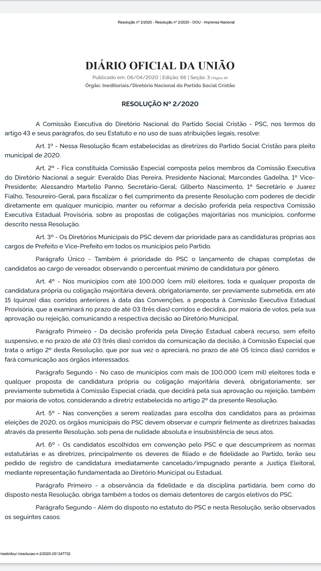 O artigo 4, parágrafo segundo da resolução 02/2020, de 18 de março de 2020 – publicada no Diário Oficial da União em 06/04/2020 – moraliza as decisões nos grandes municípios. Em Parnamirim, o terceiro maior município potiguar, o vereador Abidene não terá que bater continência para o Coronel Deputado; tem que fazer uma oração para o irmão Pastor Everaldo, que decidirá sobre o futuro na cidade Trampolim da Vitória. É pra glorificar de pé!!!!