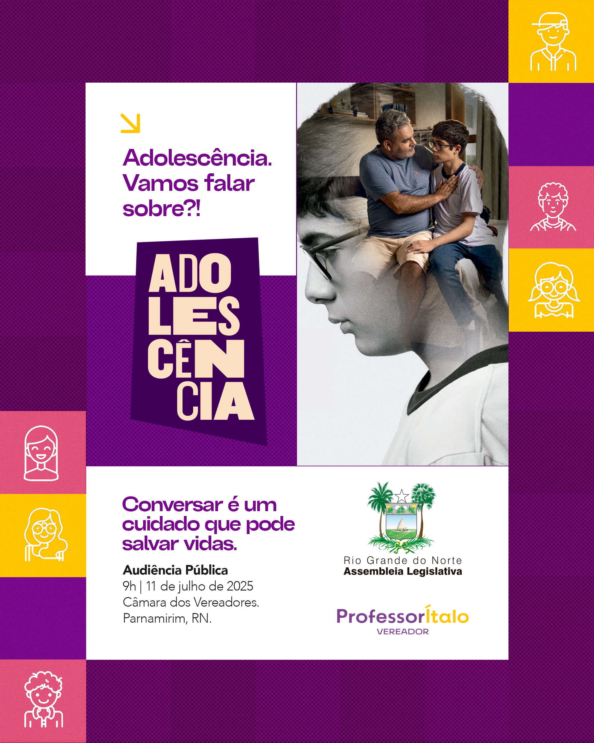 Com o tema “Adolescentes em rede: os desafios da hiperconectividade e seus efeitos emocionais, sociais e comportamentais”, o evento reunirá especialistas, educadores, pais, responsáveis e representantes da sociedade civil para debater o impacto do uso excessivo de telas e redes digitais no comportamento, nas emoções e no desenvolvimento social dos adolescentes.